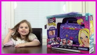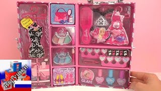 Кира открывает набор косметики для девочек в яркой и удобной сумочке с зеркалом, а также набор феи. Красимся.